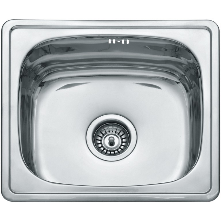 Scott & James 480mm stainless steel single inset bowl with no tap hole and basket strainer waste.